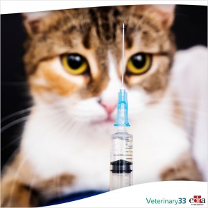 A non adjuvanted vaccine against feline herpesvirus, feline calicivirus, feline panleucopenia, and feline leukemia has been formulated in reduced volume (0.5 ml) with the same antigen content as the...