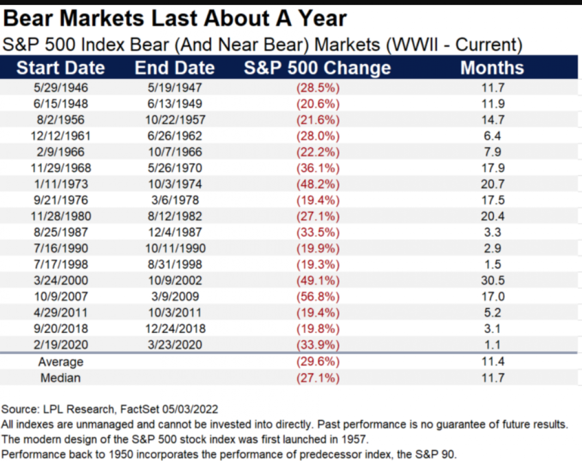 History shows that when the S&P 500 enters a bear market, it tends to stay there for a while. Since 1929, the index has entered the bear market 17 times. According to statistics, on average, bear markets cause a decline of about 38%, although since 1946, the average loss has been less than 33%.